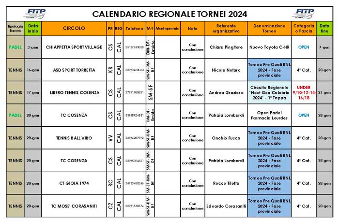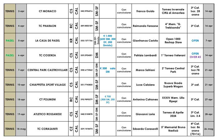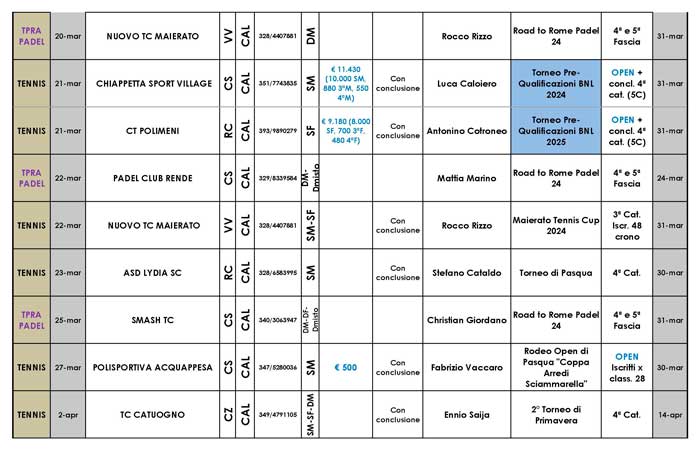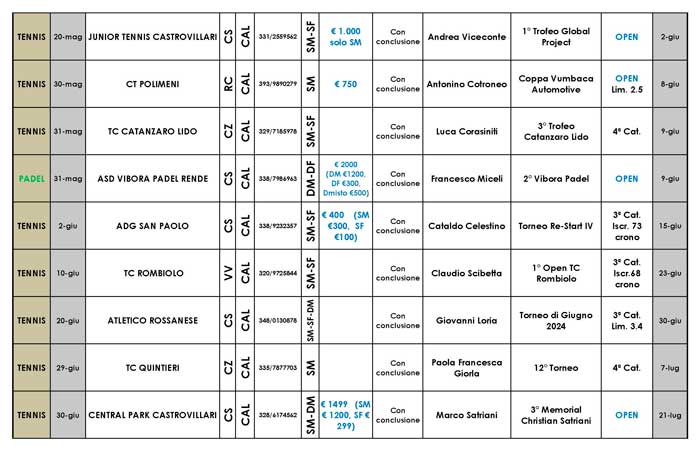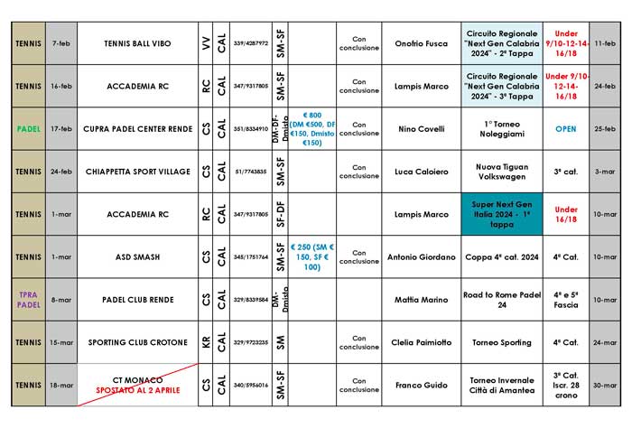 CALENDARIO TORNEI CALABRIA 2024 – agg. 30.03.2024