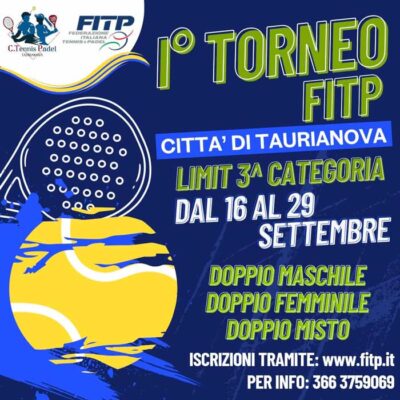 Iscriviti al Torneo Città di Taurianova – 3ª Categoria DM - DF - D Misto dal 16/09/2024 al 29/09/2024 in Via Giacomo Matteotti, 59 Taurianova (RC). -