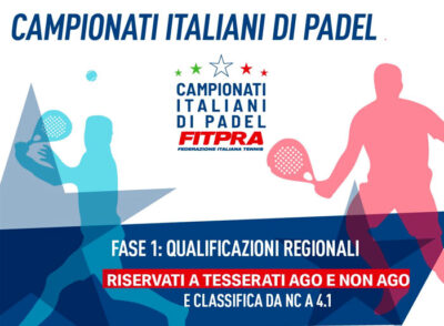 FITPRA Padel Qualificazione Campionati Nazionali 2022 - Riservato ai tesserati Agonisti e Non Agonisti e classifica da NC a 4.1